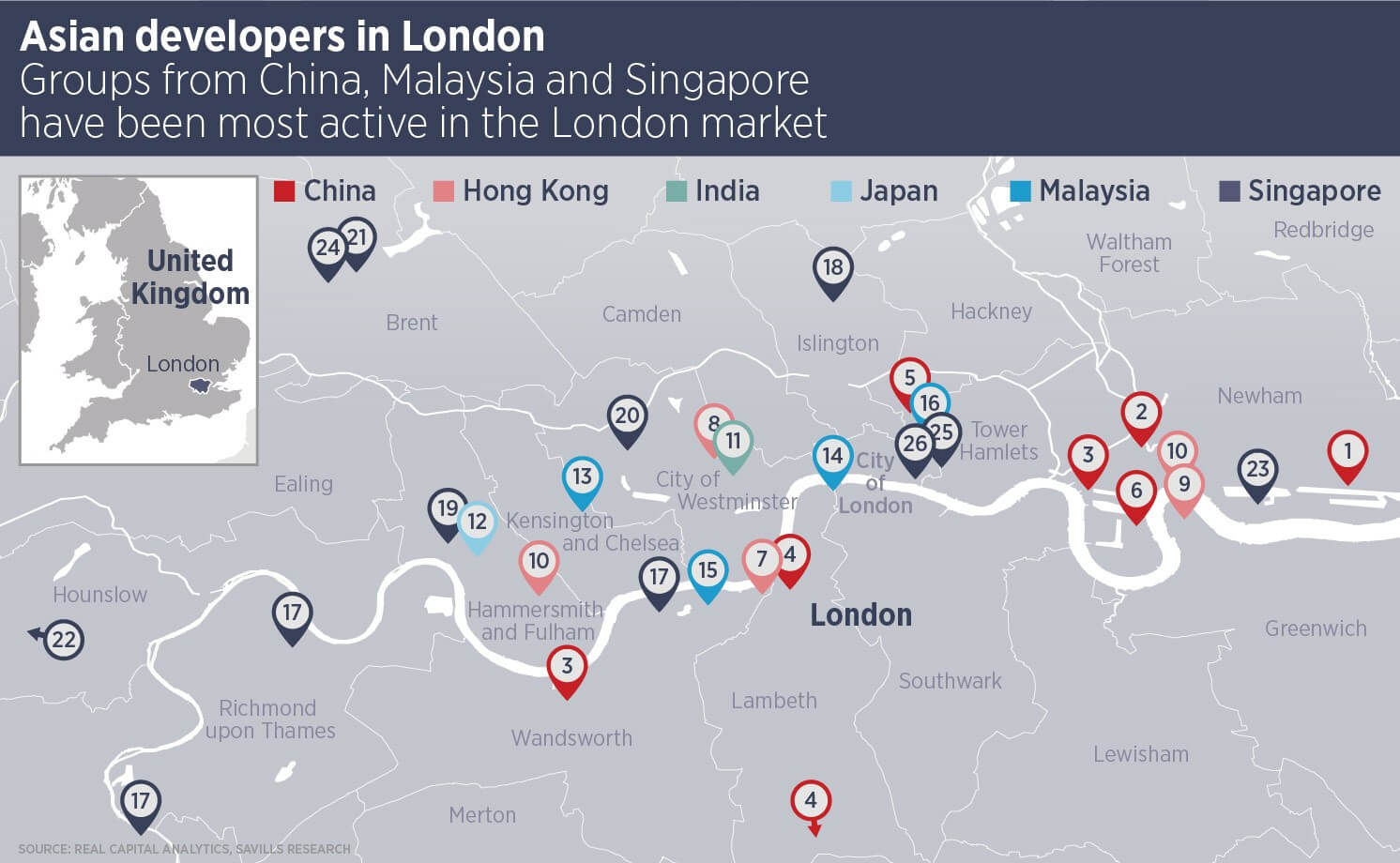 Asian developers hope to satisfy demand amongst Asian investors for UK property driven by London’s “safe haven status” and the expectation that prices and rents will continue to rise over the long term and to diversify their holdings globally.