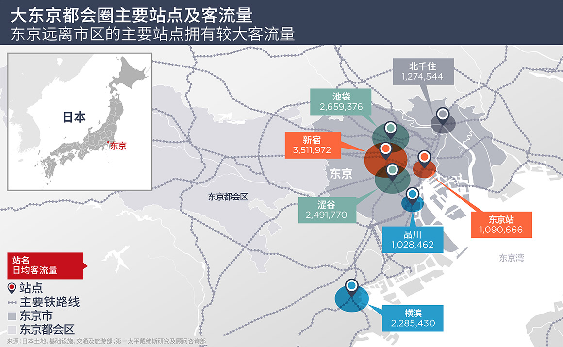 核心地段的供应短缺问题随着轨道交通网络的延伸有所缓解,交通设施的改善也在城市边缘地带催生出新的价值板块。疫情之后,未来个人及企业的“去中心化”趋势将更加明显,而横滨、池袋、品川、大宫等区域则将因此迎来增长。包括东京都在内的关东地区,2020年写字楼及住宅投资成交额达到1,930亿日元,同比增长37%。