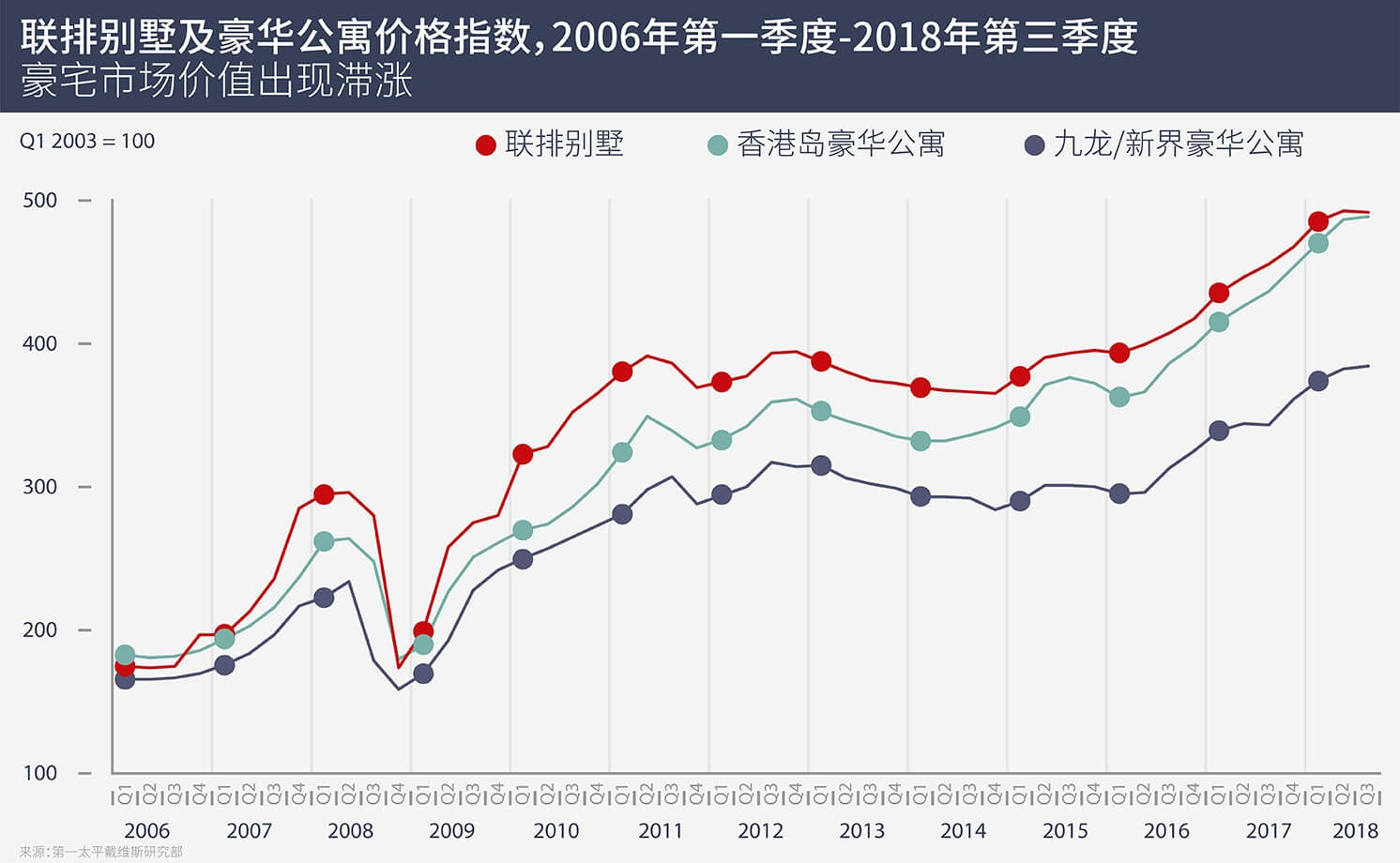 第一太平戴维斯数据显示,2018年一至三季度豪宅均价走平,而普通住宅均价则在第三季度减速增长。临近季末,价格已经进入下行通道,“跌跌不休”。