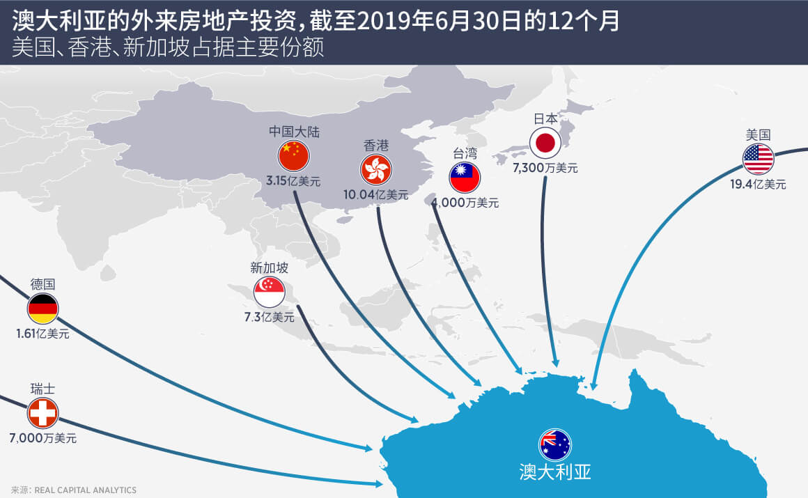 Real Capital Analytics数据显示,亚太区主要市场中,澳大利亚是今年上半年房地产投资交易同比增加的唯一市场。亚太区投资总额同比减少19%,仅澳大利亚录得3%的增幅。